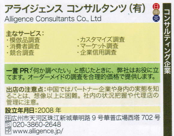中国における日本語総合誌「Whenever」2011年1月号に弊社アライジェンスが紹介されました。